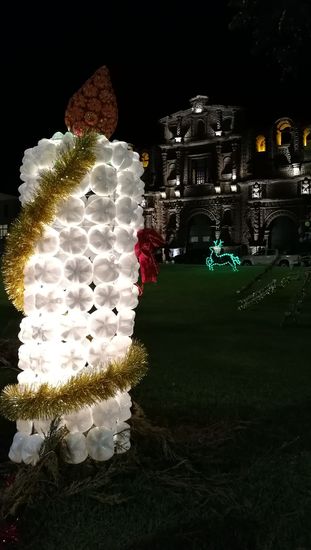 Zurück in Cajamarca schauen wir uns die Plaza de Armas an, die hübsch weihnachtlich geschmückt ist. Tierfiguren, die abends beleuchtet werden, ein überdimensionaler Advendskranz, ein großer Weihnachtsmann, gebastelt aus roten leeren Plastikflaschen und vieles mehr.