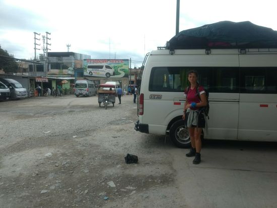 Am 2 Januar machen wir uns auf den Weg zum nächsten Ziel. Diesmal ist es eine Fahrt tagsüber. Die Tickets kauften wir bereits zwei Tage vorher bei Turismo Selva, 40 Sol pro Person. Um 8:20 werden alle Gepäckstücke fest auf dem Dach verstaut und mit einer Plane verdeckt, dann nehmen alle 13 Passagiere Platz und es geht um 8:40 los. Wir sitzen in der zweiten Reihe, links von Carlos ein älterer Señor, rechts von mir eine Señora, die wenige Minuten später schläft. Es ist ziemlich eng, doch in der zweiten Reihe haben wir vor uns glücklicherweise etwas mehr Platz für unser Handgepäck. Ich schaue interessiert aus dem Fenster, während der Fahrer eine Kurve nach der nächsten nimmt und hin und wieder kleine Ortschaften passiert. Der hat einen recht ungeduldigen Fahrstil drauf und jeder, der sich gerade in der Nähe seines Fahrzeugs befindet, wird angehupt. Wir machen zwischendurch kurze Stopps, in denen sich die einheimischen Señoras mir ihrer Ware fast in den Combi quetschen. Käse, belegte Brötchen, fritierte Bananenchips (chifles), Popcorn, und anderes selbstgemachtes, in kleinen durchsichtigen Tüten abgepacktes Naschzeug sowie Getränke werden uns angeboten. Wir kaufen uns canchitas. Es sind Maiskörner, die jedoch beim heiß machen nicht in Popcorn explodieren, sondern am Stück bleiben. Gesalzen schmecken sie phantastisch! Das Schaukeln des Combis bei der Weiterfahrt macht mich schläfrig und so döse ich immer wieder ein. Ab und an werde ich wach, versuche mit großer Anstrengung ein Augenlied zu öffnen durch das ich dann doch nichts interessantes als die Straße sehe. Also schnell entspannen, flopp! und schon ist das Auge wieder zu und ich im nächsten Traum. Dabei merke ich überhaupt nicht, wie ich von einer Seite zur nächsten kippe und Mal bei der Señora, mal bei Carlos Halt suche. Kurz vor der Mittagspause in Nueva Cajamarca werde ich hellwach und warte ungeduldig, bis wir Pause machen. Für ein paar Passagiere ist hier Ende, doch es werden wieder Neue dazukommen, meine Hoffnung auf mehr Platz im Combi schwindet schnell.
