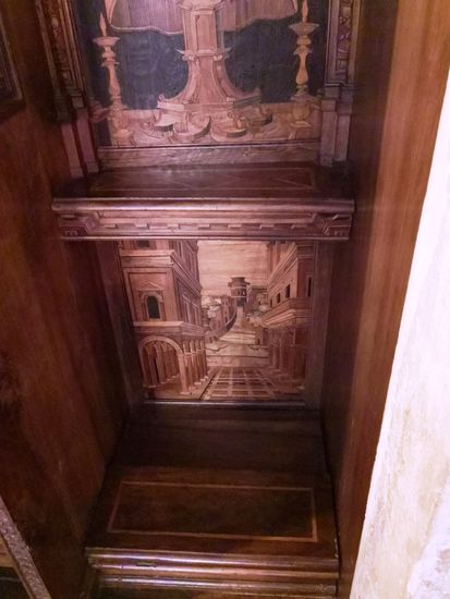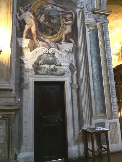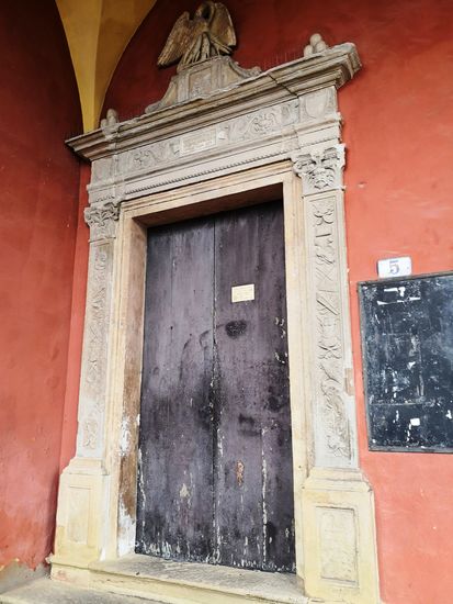 Das Marmorportal wurde von Giacomo d'Andrea aus Ferrara und Bernardino aus Mailand (1522) behauen.