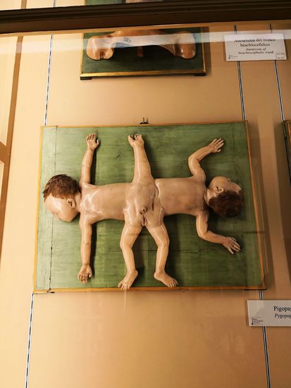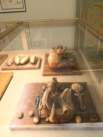 Neben den Wachsmustern sind verschiedene Muster in Missbildungen, Teratologie und krankheitsbedingten Formänderungen zu sehen, die als Lehrmittel äußerst nützlich sind, zusammen mit Drucken der Originalzeichnungen, wodurch die Funktionsweise der Anatomen dieser Zeit veranschaulicht wird.