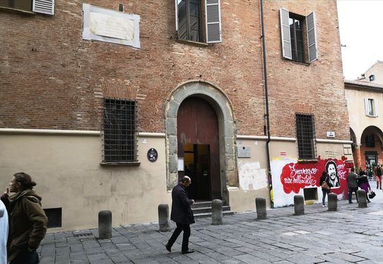 Den Palazzo Paleotti (heute Universitätsstudienhalle), der von 1877 bis 1890 Aurelio Saffi beherbergte, eine wichtige Persönlichkeit in den Kämpfen für die Unabhängigkeit Italiens.