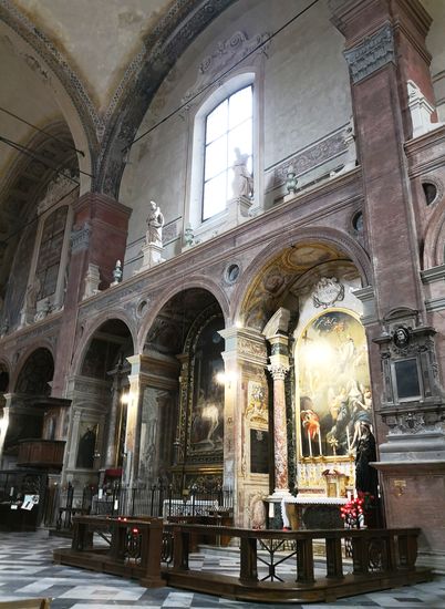 Vor den Toren des Universitätsviertels erhebt sich die Basilica di San Giacomo Maggiore, ab 1267 durch den Augustinerorder zu Ehren Jakobus des Älteren (San Giacomo Maggiore) errichtet.