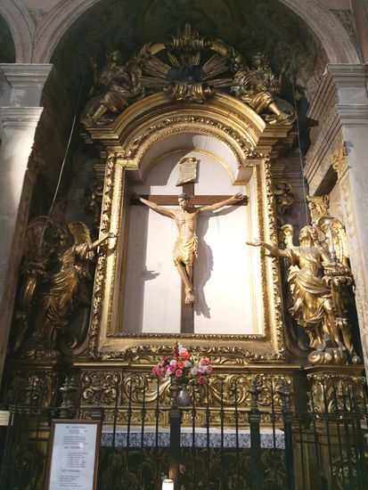 Weitere Kunstwerke sind das Polyptychon des Heiligen Kreuzes von Paolo Veneziano, eine Jungfrau in Ruhm von Bartolomeo Cesi, Ende des 16. Jh. und ein spätgotisches Kreuz aus dem 15. Jh. in der Malvezzi-Kapelle.