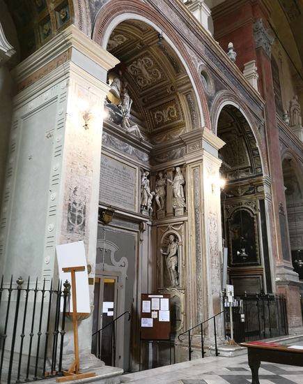 Die Poggi-Kapelle wurde von Kardinal Giovanni Poggi, 1493-1556, errichtet, der dort auch begraben liegt. Giovanni Poggis Kapelle zeigt das Faible des Kardinals für opulente Dekoration und die feinen Künste. Die monumentalen Fresken rechts und links des Altars gelten als Meisterwerke des Bologneser Malers Pellegrino Tibaldi. Diese Fresken zeigen den Kardinal, links als päpstlichen Nuntius in Spanien, rechts bereits als Kardinal.
