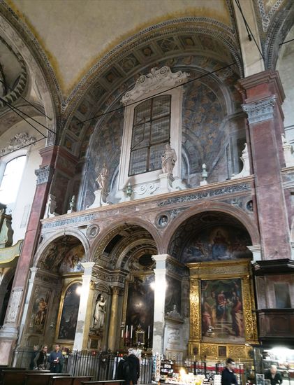 Auf der anderen Seite der Kirche befindet sich die Flanke des Palazzo Malvezzi de Medici von 1560.