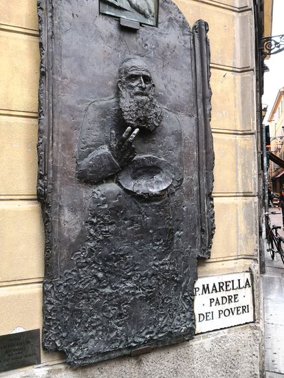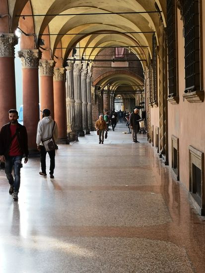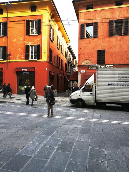 Gegen 9 Uhr laufen wir los. Via Indipendenza, Via Rizzoli, vorbei am Palazzo Ronzani.
