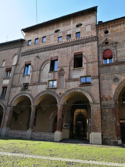 BOLOGNINI Palazzo, aus dem 16. Jahrhundert und die einzigartige Dekoration mit Terrakotta-Köpfen von Alfonso Lombardi.