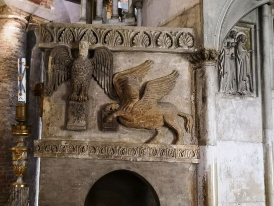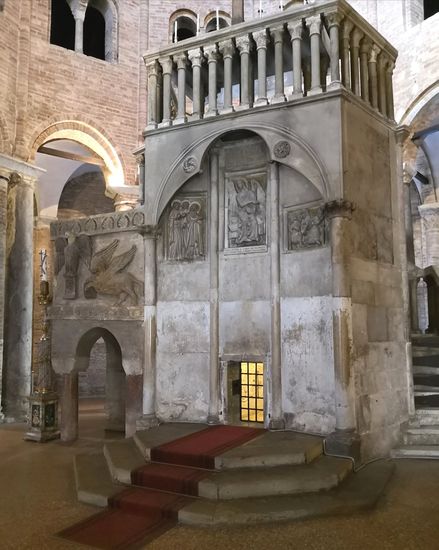 Linkerhand befindet sich die Chiesa del San Sepolcro, die im 12. Jahrhundert (1141) auf den Überresten einer alten Kirche (5. Jh.) erbaut wurde.