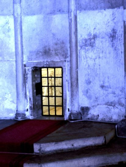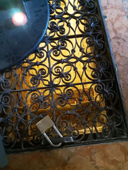 Auf dem Boden der Kirche befindet sich der Brunnen, der von einem Gitter bedeckt ist, in dem sich das Wasser der alten Quelle befindet.