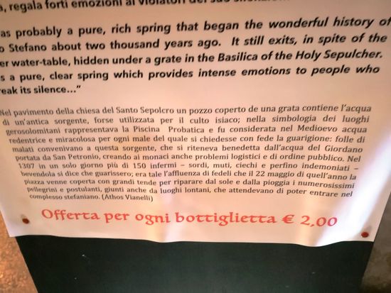 Angeblich heilt das Quell-Wasser viele Krankheiten, man kann ein kleines Fläschchen für 2 Euro erstehen. Wir haben das natürlich gekauft, schaden kann es ja nicht.
