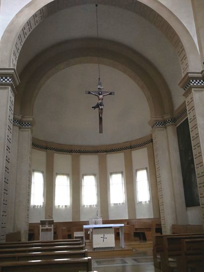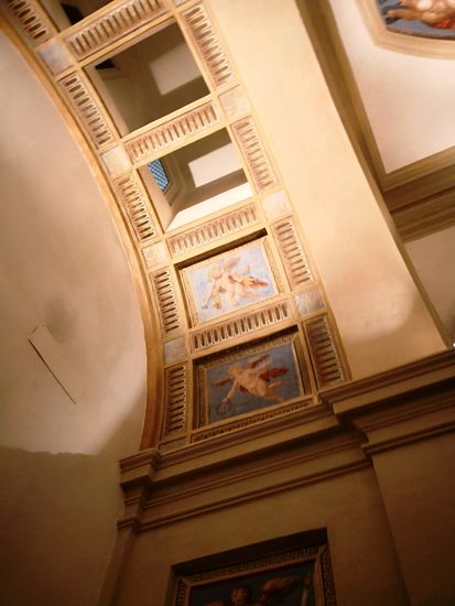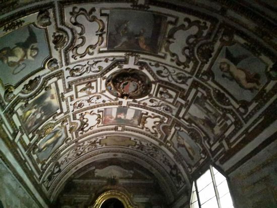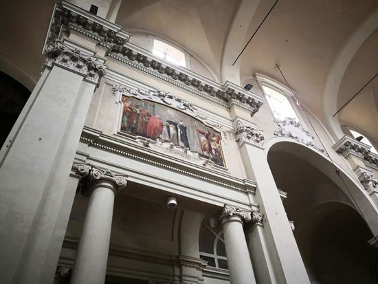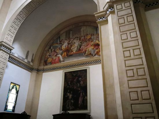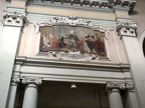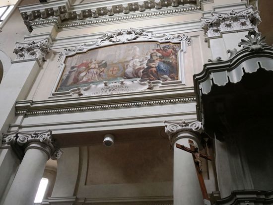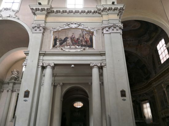 In den Lünetten über den ionischen Säulen entlang des Langhauses sind 10 Gemälde zu sehen, die Episoden (wahr und unwahr) der Kirchengeschichte darstellen.