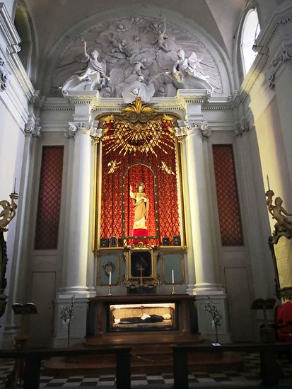Die letzte Ergänzung am Grabmal war der Altar, entworfen von Mauro Tesi (1730-1766) und 1768 ausgeführt von Alessandro Salviolini.