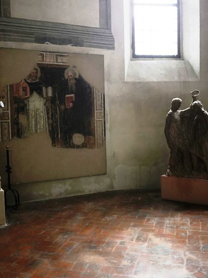 Das viereckige Kloster nebenan ist auch für seine Kreuzgänge (14., 15. und 16. Jahrhundert) mit verschiedenen Grabsteinen und Gedenktafeln an den Wänden einen Besuch wert.