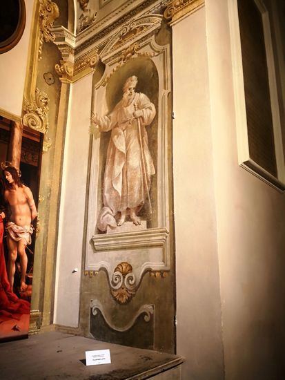 Rechts und links der Arca hängen Gemälde von Alessandro Tiarini und Leonello Spada.