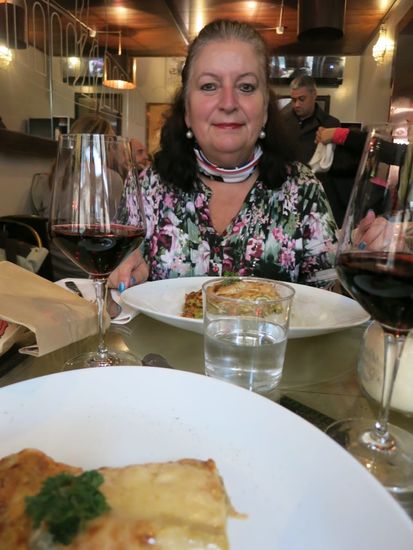 Doch Anneken gibt nicht auf. Im Bistro Roberto, Via degli Orefici, findet sie zwei Plätze für uns. Wir bestellen für uns beide Lasagne, dazu ein Glas Wein und Wasser. Die Lasagne finde ich etwas fad, Anneken ist ´zufrieden.