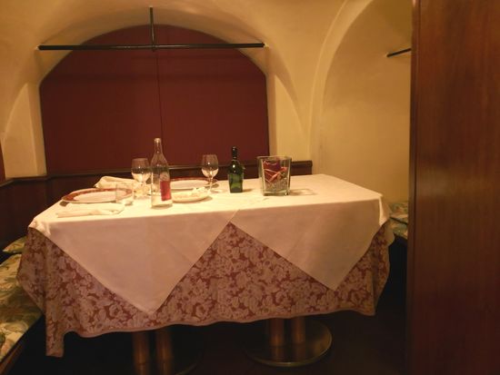 Durch die Via Goito, Via de Monari, Via San Giorgio kommen wir zur Via Nazario Sauro, wo sich das urige Lokal Rosticceria Luciano befindet. Es ist noch früh, doch wir werden von dem Besitzer freundlich begrüßt und zu unserem Tisch begleitet. Wie immer, habe ich hier einen Tisch reservieren lassen.