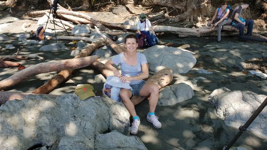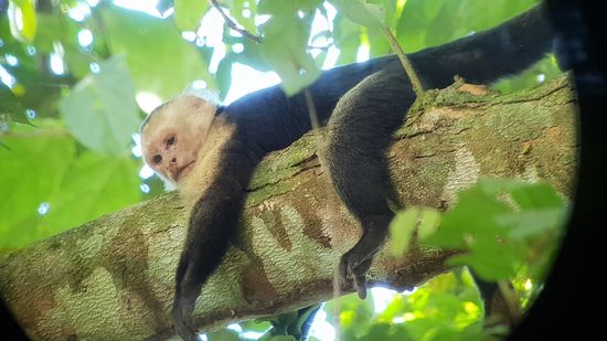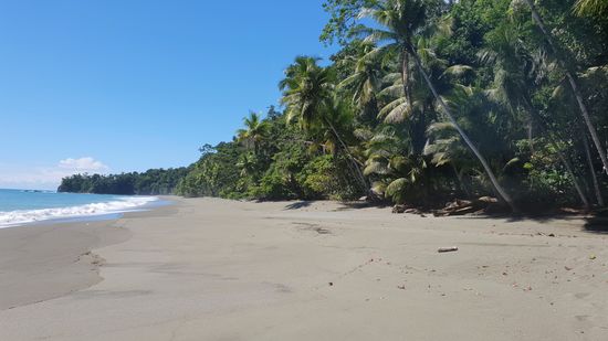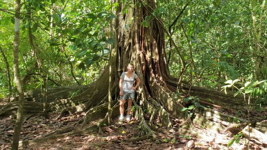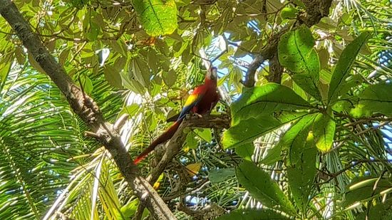 Dann sind wir am Zielort Carate, von hier aus geht es 20km durch den Dschungel und am Strand entlang um an die Rangerstation Sirena zu kommen. Der erste Fund nach 1km ein Pfeilgiftfrosch, es geht weiter mit Affen (wir haben alle 4 Arten in Rosta Rica lebende Affen gesehen), dann Aras, Tucane, eine Boa, wieder ein anderer Vogel usw. das verrückte an der Sache, außer die Aras, die schreien wie verrückt und die ständig uns begleitenden Affen, hätten wir kein einziges Tier entdeckt. Es grenzt an Magie was diese Führer draufhaben. Die Boa z.B. noch nicht mal obwohl wir wussten, dass sie im Baum ist und auch in etwa wo, hatten weder Anja noch ich einen blassen Schimmer wo das Ding hängt und haben sie nur mit dem Teleskop gesehen. So ging das die ganze Zeit, echt krass. Aber nicht nur die Augen dieser Ranger sind sowas von konditioniert auf Klein -und Großtiere, nein auch die Nase. Denn gelegentlich stellte er die Nase hoch, man sieht die Nasenflügel bewegen und dann kommt so eine Aussage wie “Ein Ameisenbär hier irgendwo“ und Anja und ich schauen uns nur verdutzt an. Aber nicht nur die Tiere begeistern auf dem Weg, sondern auch die Flora, der Dschungel ist so abwechslungsreich mit seinen Bäumen und Pflanzen und das im Prinzip so vielfältig, das sich der Weg ständig verändert.