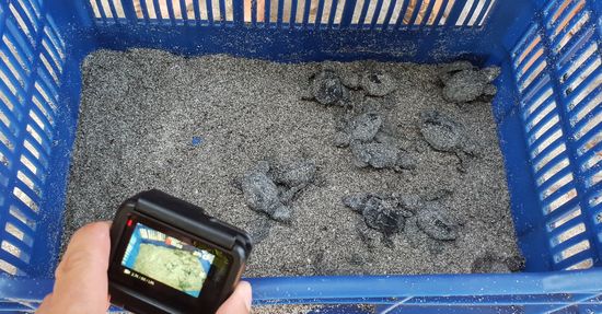 Es ist wirklich zu süß, wie sich diese Kleinen durch den Sand quälen und am Ende von einer ablaufenden Welle mit in den Ozean gezogen werden. Ein tolles Naturschauspiel.