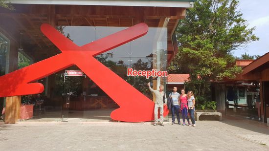Heute geht es zu einer weiteren besonderen Aktion der Region, denn durch die Berge haben sich hier eine Reihe von Canopy Agenturen angesiedelt. Synonyme für das Spektakel: Zipline, Affenschaukel oder über Rollensysteme am Drahtseil sich bekloppt, schreiend in die Tiefen stürzen. Wir entscheiden uns für den Anbieter Namens “100% Adrenalin Extremo“, besser gesagt, ich entscheide, denn Anja ist sehr verhalten, was überhaupt diesen heutigen Programmpunkt anbelangt und hat sogar vor Aufregung die Nacht schlecht geschlafen. 4235 Meter Drahtseil (die längste Tour in ganz Costa Rica), einen Tarzansprung und ein sogenannter SUPERMAN, bei dem man horizontal eingespannt wird und Kopfvorwärts wie eben ein Superman durch die Gegend fliegt, stehen uns bevor.