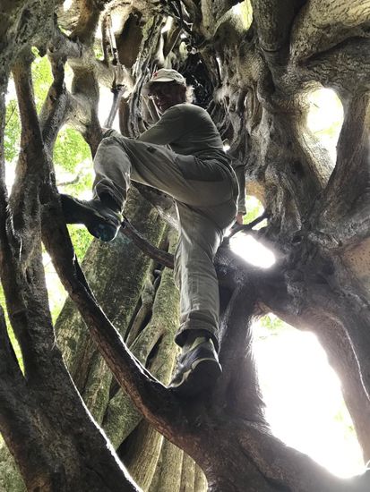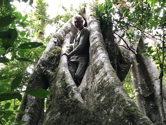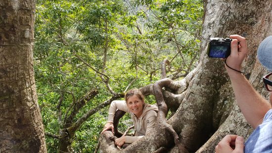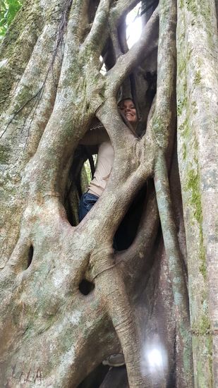 Am Nachmittag treffen wir Florian aus München, mit dem wir schon einen Abend in Montezuma verbracht haben und gehen mit Rene, dem Hostel-Chef eine 4km Runde in der nahen Umgebung von Monteverde, denn er möchte uns einen besonderen Ficus zeigen. Der Baum ist eine Attraktion die zur Abwechslung mal kostenlos ist. Nach 20min. Weg haben wir ihn erreicht und sind begeistert von der Möglichkeit innerhalb des Baums auf ca. 20 Meter hinaufzusteigen und im Baum zu sitzen und die Aussicht zu genießen (die kommenden Bilder an dieser Stelle erklären alles).