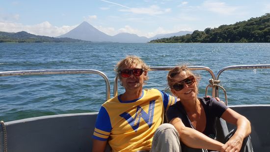 Als Transport steht die Variante BBB (Bus,Boot,Bus) zu Verfügung, wo man innerhalb von 3,5h mit dem Shuttle-Unternehmen für 25$ von Monteverde nach Fortuna gebracht wird. Die Alternative wäre für 5$ mit dem Public Bus innerhalb von 7h um den ganzen See zu fahren. Alleine schon die Bootsfahrt gleicht eher einem Ausflugtrip über den Lake Arenal, als ein Transfer. Es ist traumhaft über den See, diesem eindrucksvollen Vulkan immer näher zu kommen und ich kann meine Kamera kaum aus der Hand legen, zumal wir Glück haben, dass der Gipfel frei ist, viele Leute sind oft drei bis vier Tage hier und haben ihn nie frei gesehen.