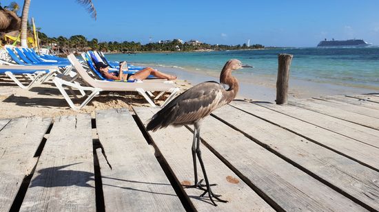 Heute an Neujahr haben wir zwei Tauchgänge gebucht, aber zurzeit ist es hier so windig, dass der Hafen geschlossen bleibt und wir es morgen nochmal angehen wollen. Also Handtuch raus und ab an den Strand. Die Besonderheit des Tages ist Essen und zwar im besten Fischrestaurant“ Nohoch Kay“ in ganz Mahahual. Diesen Titel hat es zu recht verdient, denn wir waren mittags und abends dort… am Ende sahen wir selbst aus wie ein Kugelfisch.