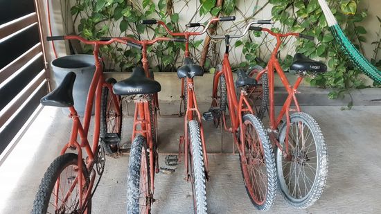 Unsere 1A Fahrräder, mit denen wir kostenlos, den ganzen Tag unterwegs sein können. Cooler Service vom Hostel.