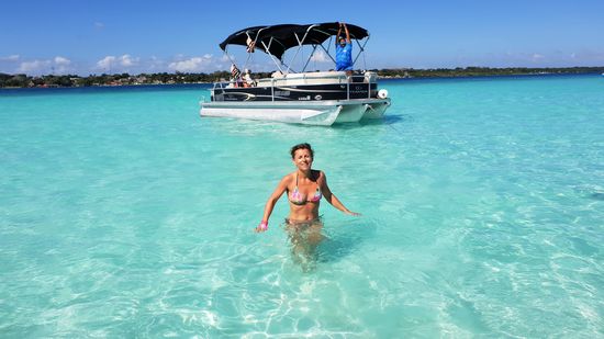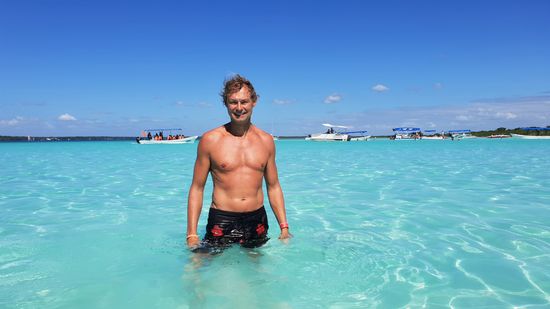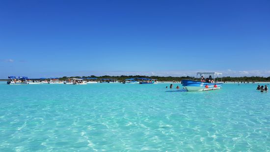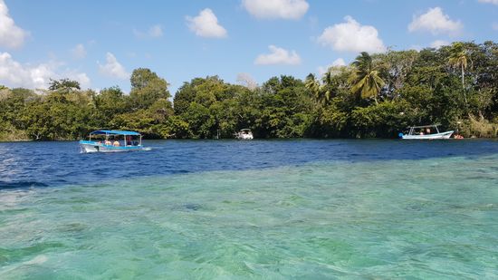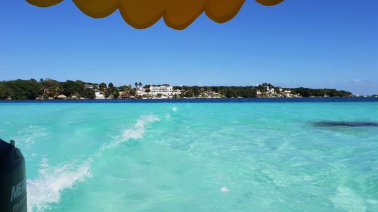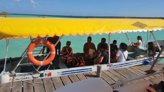 Um kurz vor 11:00 Uhr sind wir schon dort. Schnell ist eine Bootstour auf dem 60km langen See gebucht. Die Entstehung dieses riesigen Sees sind sieben Cenoten die irgendwann zusammenbrachen und diesen See ergaben. Hier findet man auch 7 Farben von blau und dass macht diesen See zu etwas Besonderem. Es ist Wahnsinn, wie traumhaft hier das Wasser leuchtet und man muss es mit eigenen Augen gesehen haben um zu verstehen was diesen See so Magisch macht.