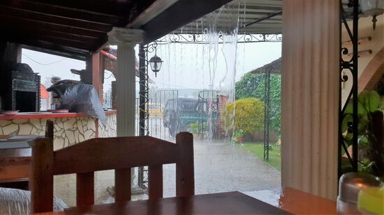 Der Schauer endet erst nach 2 Stunden. In der Zeit habe ich dann einfach meine erste Mahlzeit in Cuba zu mir genommen. Der Regen geht wieder in Niesel über und ich versuche einen 2ten Anlauf um ans Terminal zu kommen und dann die Straße weiter zur Bushaltestelle. Ich sehe schon die Ampel und der Regen wird wieder mehr, schon sehe ich rechts von mir einen Bus ankommen, ich lege einen kleinen Sprint ein und schaffe es gerade so den Bus zu erwischen, jetzt schüttet es auch schon wieder und ich bin einfach heil froh, hier im Bus Richtung Innenstadt unterwegs zu sein.