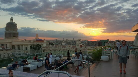 Pünktlich um 18:00Uhr treffen wir uns im Hotel Kempinski am Parque Central, der besten Adresse in Cuba und nehmen einen Willkommensdrink auf dem Rooftop, incl. fantastischem Sonnenuntergang. Es ist wirklich schön hier Freunde zu treffen und wir schnattern und erzählen von all unseren Reiseerfahrungen in und um Cuba herum.