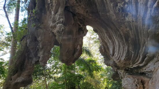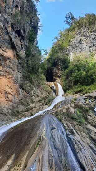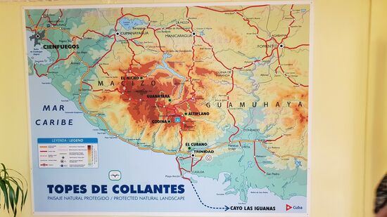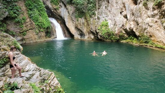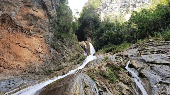 Heute geht es mit dem Veranstalter Cubatour in die Berge. Hauptziel sind die Topes de Collantes, ein Gebirge im Hinterland von Trinidad und dort über eine 7 km langen Wanderung zu einem Wasserfall. Der erste Stopp ist aber eine Kaffeeplantage und der Erklärung zum Kaffeeanbau und Verkostung. Im Anschluss geht es dann natürlich noch an einen Verkaufsstand. Nun endlich geht es zum Startpunkt unserer Wanderung, 3 km geht es nur Bergab bis wir am ersten Naturpool ankommen und von dort nicht unweit der Wasserfall seinen Weg vom Berg findet. Der Wasserfall “Sendero Salto de Caburni“ und der Weg dorthin ist nichts Besonderes und auch der Naturpool lockt mich nicht ins Wasser. Da aber das Gelände recht verblockt und felsig ist, nutze ich das Areal um ein bisschen herumzukraxeln.