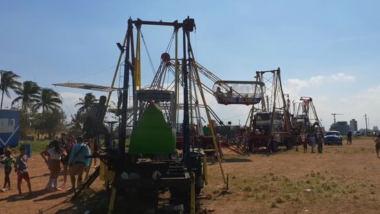 Heute gibt es bei uns ein getrenntes Programm, denn Uwe macht die Freewalkingtour und den Touristendoppeldecker durch die Stadt alleine (hab ich ja vor 2 Wochen schon gemacht). Ich fahre nochmal an den Hausstrand der Havanneros und habe als Ziel den 18km entfernten “Playas del Este“. Auch hier fährt wieder ein Hop On/Off-Touristenbus vom Plaza Central für 4,80Euro an der Küste entlang und man kann den ganzen Tag bis 18:00Uhr immer wieder zusteigen. Ich empfehle hier die vorletzte Busstation als Ausstieg, da der Strand deutlich schöner und feiner ist als Richtung Osten, wo er deutlich steiniger wird. Ich genieße hier noch meine letzten Strandstunden und mach mich dann auf den Weg zur Christusstatue nah am Fort, zur Hafeneinfahrt. Hier auf den Wiesen vor dem Fort ist ein Jahrmarkt aufgebaut und ich staune nicht schlecht, was die hier mit Traktormotoren als Antrieb für die Fahrgeschäfte hinbekommen. Es ist extrem witzig diesem Treiben hier zuzuschauen und man kommt sich vor wie 50 Jahre zurück und keinem TÜV weit und breit – Lach!