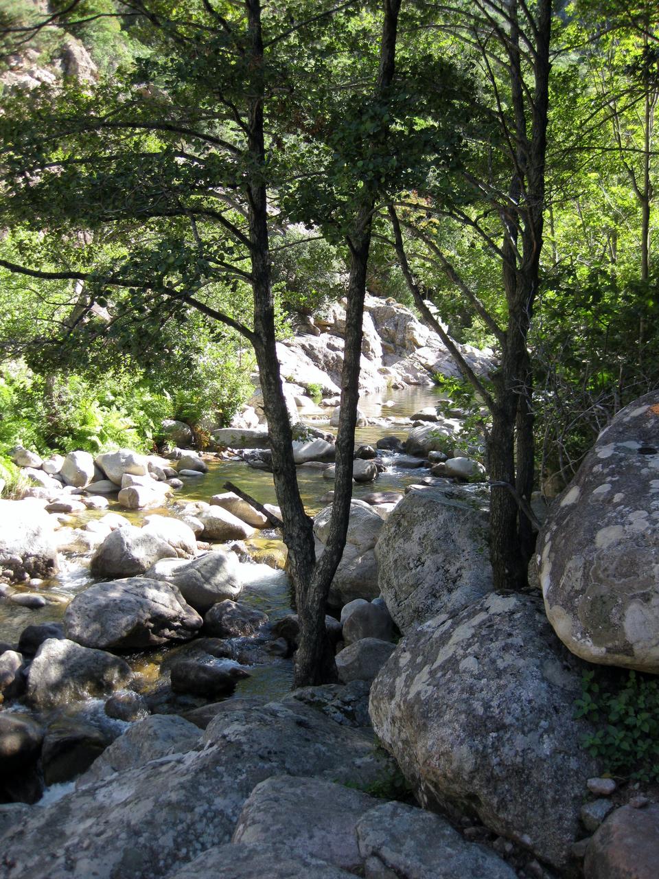 Von Corte ging es zunächst durch das Niolatal mit zahlreichen Wanderwegen. Lange Zeit war diese Gegend nur über Maultierpfade erreichbar. Hier liefen uns Wildschweine über den Weg. Man sieht sie vor allem im Herbst, wenn die Kastanien von den Bäumen fallen.