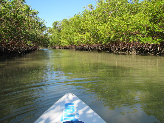 Zurück paddle ich wieder vor dem Strand. Im Big Hickory Pass vor Bonita Springs gibt es eine starke Tidenströmung, hier heißt es rechtzeitig nach links in den Mangrovenkanal abbiegen. Die auflaufende Flut bringt mich fast von allein zurück an den Ausgangspunkt.