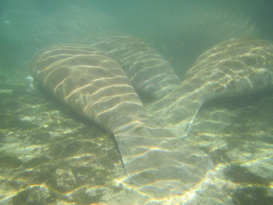 Zuerst ging es zu den Tree Sister Springs, wo die größte Ansammlung von Manatees zu erwarten ist. Tatsächlich waren es dann auch mindestens 30 .. 50 Tiere. Das eigentliche Quellgebiet war für jegliche Wasserfahrzeuge, aber auch für Schnorchler gesperrt. Ab und zu zeigte sich ein Manatee außerhalb.
