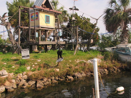 Heute geht es zu den Homosassa Springs, etwa 30 km südlich. Direkt am Ufer des Homosassa River liegt das auch bei Einheimischen beliebte Open-Air Restaurant Mac Rae's. Hier ist eine öffentliche Einsetzstelle, die wird vorwiegend von Hobby-Fischern genutzt. Ich paddle zunächst den Homosassa River aufwärts, vorbei am Monkey Island.