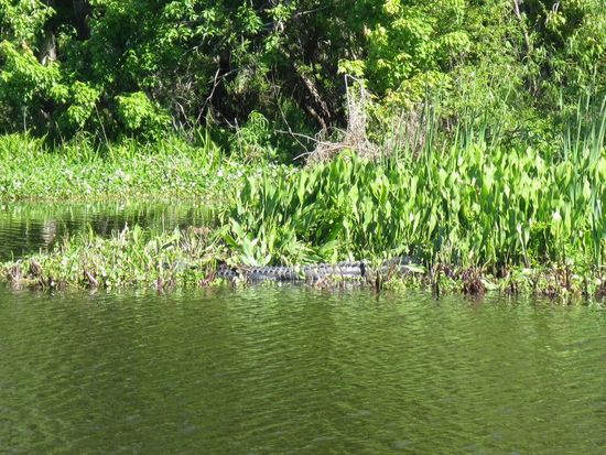 Die Fahrt zum Ponce de Leon Springs Park dauert etwa eine Autostunde. Die Temperatur früh beträgt nur 35° F, das sind 2° C. Im Laufe des Tages werden es dann 15° C. Gleich unterhalb des Quellgebiets kann ich mit dem SUP starten. Ich paddle zunächst den Spring Garden Creek entlang, einen trägen Fluss in Richtung Lake Woodruff. Hier ist wenig Strömung, aber einige Alligatoren und sonst niemand weiter. Nach etwa einer Stunde kehre ich um und mache noch eine Runde in dem kleinen Spring Garden Lake. Hier kommen einige laute Airboats dazu, die aber bald wieder verschwinden.