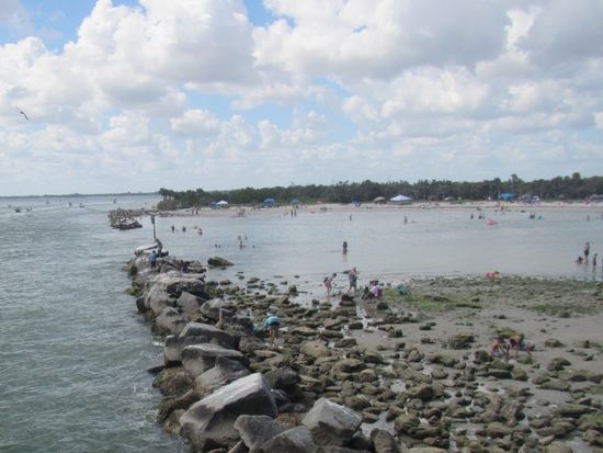 Erster Stop ist am Sebastian Inlet State Park. "Inlet" bezeichnet eine Lücke in den Barrier Islands. Vorher hatte ich noch der Marina des Parks einen kurzen Besuch abgestattet, wegen des recht starken Winds habe ich aber von einer SUP-Tour abgesehen. Der State Park besteht hauptsächlich aus einer (sehr belebten) Badestelle und dem Strand am Ozean.