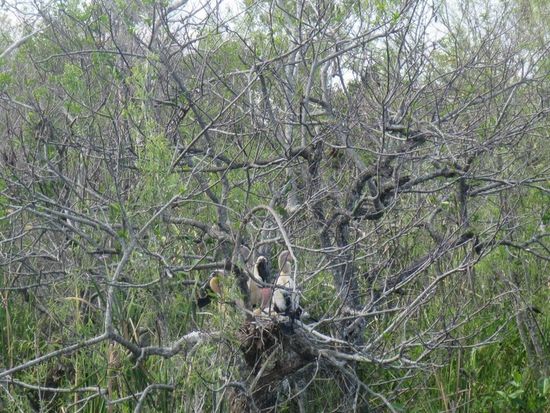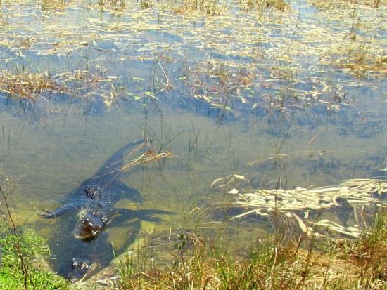 In einem Tümpel direkt neben dem Weg ist ein großer Alligator gut zu sehen, bei der Rückfahrt dann weitere und noch mehr von der Vogelwelt.