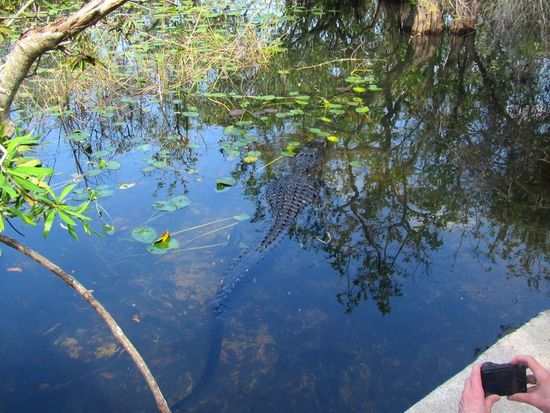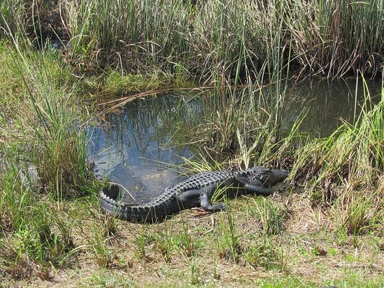 Ein Stop lohnt sich beim Shark Valley. Hier kann man einen recht guten Eindruck vom Everglades Nationalpark bekommen. Die Anfahrt ist etwas zäh, weil der Parkplatz voll belegt ist und immer nur ein Auto hineingelassen wird, wenn ein anderes heraus kommt. In dem Park kann man eine größere Runde auf einem Erddamm durch die Everglades machen. Da es ein sehr heißer Tag ist, entscheide ich mich gegen Fahrrad und für die Tram Tour. Letztere bietet noch den Vorteil einer sehr kundigen Erläuterung. Zu sehen gibt es Alligatoren und eine vielfältige Vogelwelt.