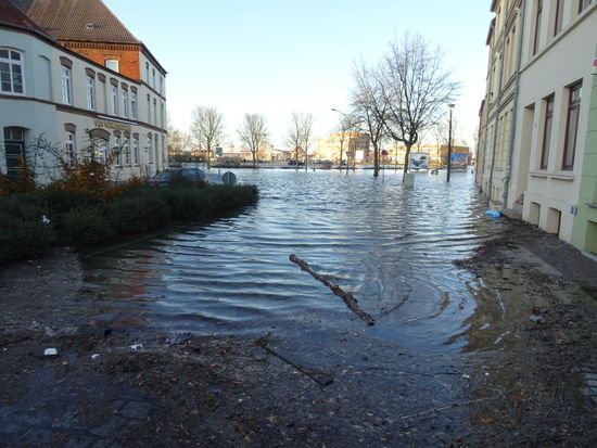 Das Tief "Zeetje" bringt der Ostsee die erste Sturmflut des Jahres und setzt einige Straßen unter Wasser.