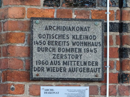 Am gleichen Platz ist auch die Marien Kirche. Von ihr ist aber nur dieser Turm übrig. Von dem Schiff wurden bisher nur die Fundamente neu aufgebaut.