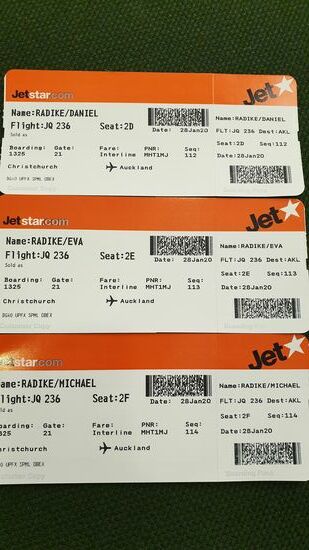 Wir werden mit dem Transfer-Kleinbus zum Flughafen gebracht. CheckIn bei JetStar auf Flug JQ 256 nach Auckland erfolgreich erledigt, die Koffee werden bis AKL gebracht. Dort bekommen wir sie wieder, wechseln zum Internationalen Terminal und checken bei Emirates ein. Dort werden die Koffer gleich über Dubai bis Wien durchgeroutet. Dann betreten wir unseren Airbus A320 und die Rückreise beginnt.