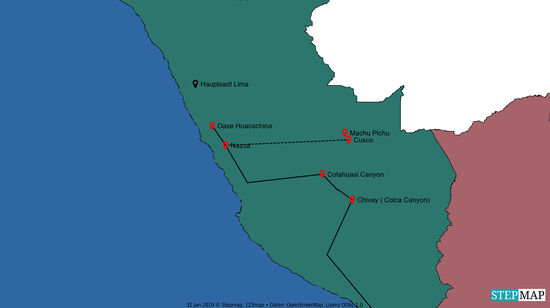 Huacachina war bereits der nördlichste Punkt meiner Reise. Morgen werde ich nach Westen aufbrechen, um in zwei Tagen Cusco zu erreichen. Da mich mein Weg zurück in die regenreiche Berge führen wird, sehe ich den nächsten Tagen und Wochen mit gemischten Gefühlen entgegen. Ich hoffe auf möglichst wenig Schwierigkeiten mit den Straßenverhältnissen und auf möglichst viel Sonnenschein. Nichtsdestotrotz freue ich mich sehr auf Cusco, eine der schönsten Städte Perus und die Sehenswürdigkeit Südamerikas schlechthin, Machu Pichu!