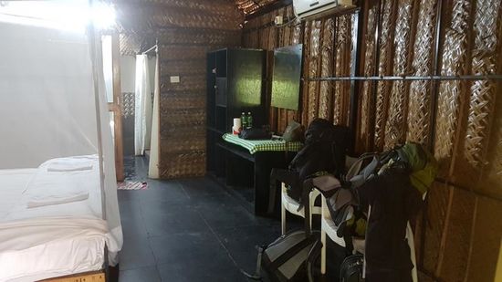 Die Räume (Schlafraum und Bad) sind sehr groß, allerdings relativ dunkel und es ist viel Platz darin. Soll heißen: nur wenig Ablagemöglichkeiten. Das Bett ist mit einem Moskitonetz ummantelt, der Ventilator summte, die AC ging an …. wunderbares Plätzchen.