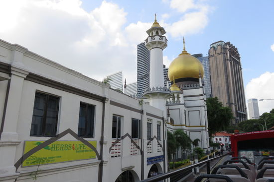 Am ersten Tag werden wir von den Sonnenstrahlen und blauem Himmel geweckt. Wir machen uns auf den Weg zur nahegelegenen Busstation für hop on/ hop off. Discover Singapore. Tipp: 7 Routen für einen Preis, die sich bestens ergänzen, weil der Wechsel von einer Route zur anderen möglich ist. Die einzelnen Routen sind farblich gekennzeichnet und auf einem Plan sehr übersichtlich gestaltet. Wir fahren die von uns bereits zu Hause aufgeführten Sites hintereinander ab: Little India mit den bekannten Shophouses. Zweistöckig, sollten die Shops im Erdgeschoss bis an den Straßenrand heranreichen. Das wollten die Briten nicht, sie bestanden auf einen Fussweg- Damals konnten sich Europäer und einheimische Inder, Malayen sowie die geschäftstüchtigen Chinesen einigen, und so dienen die Wohnbereiche im zweiten Stock als Kolonnaden. Auch im arabischen Viertel mit der großen Sultan Moschee Singapurs östlich von Little India gibt es vor allem Shophouses. Die Fassaden im zweiten Stock sind herrlich verziert und variieren von Community zu Community. Es geht weiter Richtung Süden zum chinesischen Viertel, China Town, das aufgrund des bevorstehenden Frühlingsfestes am 5. Februar mit dem chinesischen Festagsrot geflutet ist, verziert mit zahlreichen Schweinchen. Das kommende Jahr des Schweines wird aber auch auf allen Hauptstraßen, in allen Shopping Mails und öffentlichen Plätzen vorbereitet.