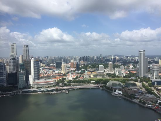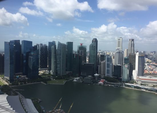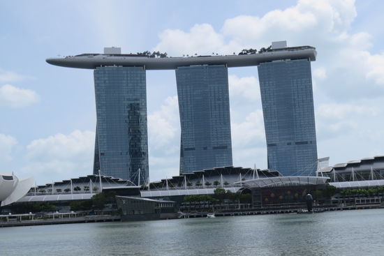 Erster Halt für uns der Marina Bay Sands Skypark. Tolle Architektur, weiträumige Anlagen, zahlreiche Shops, die alle Marken dieser Welt anbieten und dann das Hotel selbst mit dem langen Schiff, das drei Tower verbindet. Wir fahren mit dem Fahrstuhl 56 Etagen hoch, kostenpflichtig, und geniessen den Blick über Singapur. Leider können wir das weltweit höchste Swimming Pool nur von weitem betrachten. Die Benutzung ist allein für Hotelgäste möglich. Ergo: Wenn es nochmal nach Singapur geht, wird im Marina Bay Sands Hotel übernachtet!!! Von dort wirkt das weltweit höchste Riesenrad mit 165 Meter Höhe gar nicht mehr so hoch. Es sieht so aus, als ob es steht. Erst später merken wir, dass es sich dreht, sehr langsam, eine halbe Stunde dauet eine Umdrehung.