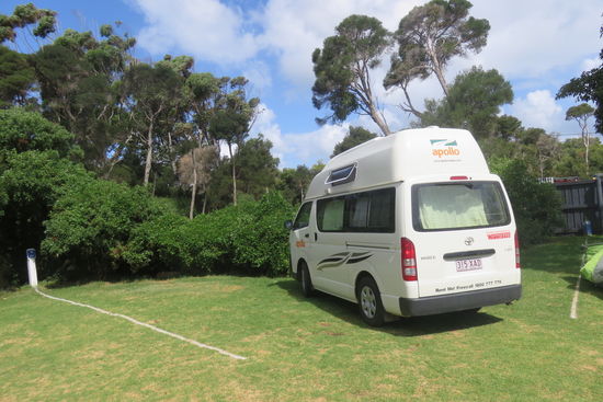 Am Samstag nach einem frühen Strandspaziergang in der Sonne und Frühstück vor dem Camper brechen wir auf zu unserem letzten Stopp vor Melbourne. Wir haben zwei Nächte auf dem Big 4 Caravan Park in New Haven reserviert, direkt am Strand und am östlichen Zipfel der Insel Phillip Island. Wir nehmen uns Zeit und fahren durch die Landschaft, teilweise auf „one lane“ Wegen, allerdings sind sie alle befestigt. Das ist auch gut, denn der Wind, der kurz nach Verlassen von Seaspray aufkommt, bringt dunkle Wolken mit viel Regen. Uns stört es nicht, wir erfreuen uns an der Landschaft, die recht hüglig, aber kaum bewaldet ist. Kilometerlang ziehen Weiden an uns vorüber, auf denen Kühe und viele Schafe grasen. Auch hier sehen wir kaum grün, mehr gelb und braun, die Hitze der letzten Wochen hat ihre Spuren hinterlassen. Insofern ist der starke Regen für die Gegend ein Segen, das sehen auch wir ein.