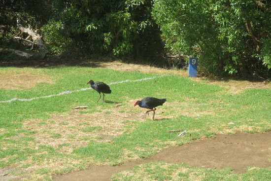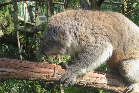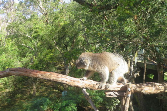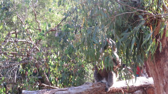 Und auch sonst bietet die Insel viel Abwechslung, vor allem wegen ihrer Tier- und Pflanzenvielfalt. So besuchen uns bei jeder Mahlzeit vor unserem Camper wunderschön blau und schwarz gefiederte Blesshühner, um wenigstens ein paar Krümel zu erhaschen. Doch die meisten Touristen, vor allem aus China, kommen auf die Insel, um die Koalas zu erleben. Das Koala Reservation Centre informiert recht umfangreich und detailliert über das Leben der Koala in Australien und bemüht sich um den Erhalt der Tiere. Denn die Zivilisation im Lande hat den putzigen Bären ordentlich zugesetzt. Mitte des 19. Jahrhunderts wurden Koala in Australien eingeführt und haben sich damals recht schnell vermehrt. Doch das ist lange her, heute sollen Koalas noch an der Ostküste des Landes leben, aber wir haben sie erst in dem Aufzuchtzentrum zu sehen bekommen. Und wir haben auch großes Glück. Ein Koala von den insgesamt sechs Tieren hat, als wir kommen, seine Wach- und Fressphase. Eigentlich schlafen die Koala 20 Stunden am Tag und sind immer nur kurze Zeit munter. Sie ernähren sich ausschliesslich von den Blättern der Eukalyptusbäume. Die bringen wenig Energie und lassen sich schwer verdaue, so erfahren wir auf den verschiedenen Schautafeln in der Außenanlage. Zehn Tage benötigen die Tiere für die Verdauung eines Blattes. Und 12 bis 16 Jahre alt werden die Koala. Ihnen beim Essen und Wandern auf den Bäumen zuzusehen, ist schon ein tolles Erlebnis.