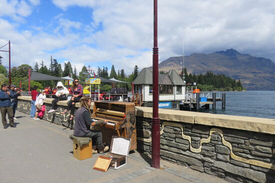 Am späten Vormittag sind wir zurück im Ort Wanaka; die Hauptstraße am Ufer ist gefüllt von Einheimischen und Touristen. Die Cafes gut gefüllt, die Läden zumeist geöffnet. Eigentlich sind die Öffnungszeiten den unseren recht ähnlich: montags bis freitags von 9 bis 17.30 Uhr. Ein wenig eher werden die Läden geschlossen, das fiel uns bereits in Australien auf. Aber die großen Supermärkte haben sieben Tage die Woche und bis in die späten Abendstunden geöffnet. Ursprünglich war der Ort ein ruhiger Platz für Sommerurlauber. Im Januar und Februar sollen die Temperaturen am höchsten sein. Den Eindruck haben wir gerade nicht. Aber nachdem die Berge in der Region als Kulisse für die Filme „Herr der Ringe“ und „Hobbit“ herhalten mussten, soll sich die Zahl der Besucher und damit auch der Einwohner sprunghaft erhöht haben. Wanaka zählt heute mit rund 6500 Einwohner doppelt so viel als noch in den 1990er Jahren.